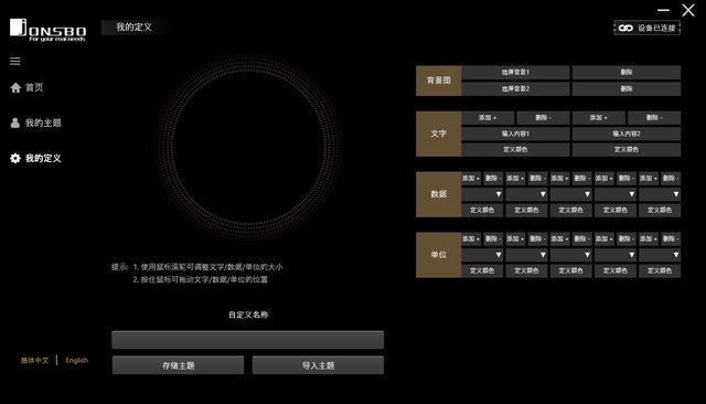 /數據/單位位置。可對自定義進行命名、儲存、匯入。頁面右邊可對背景圖(最多2種背景