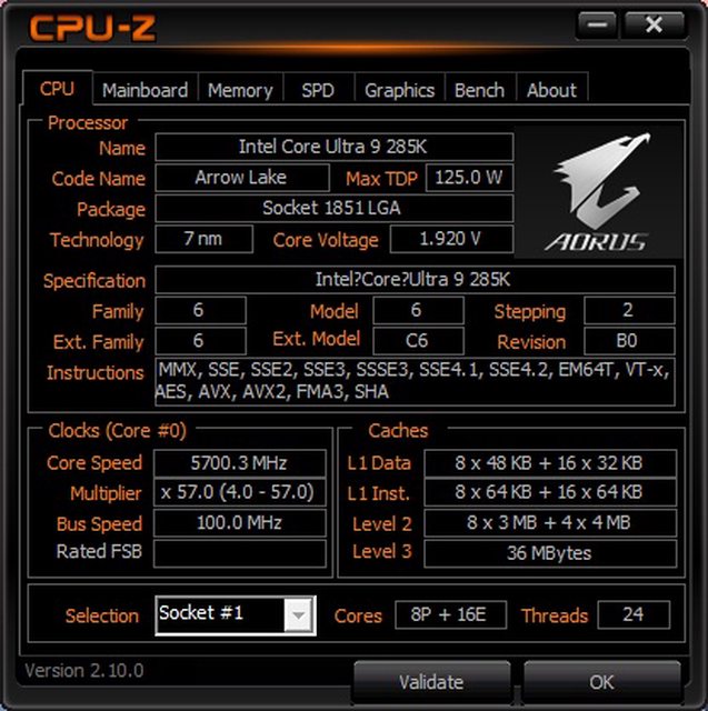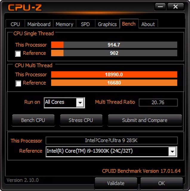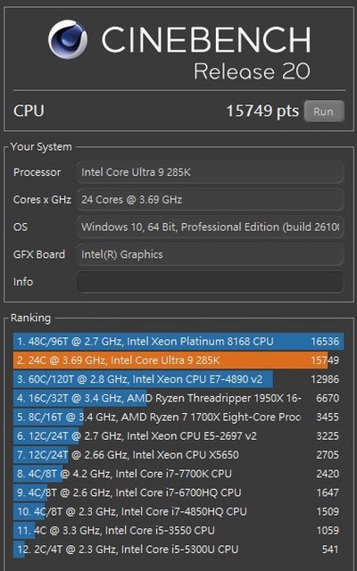 CPU:Intel Core Ultra 9 285K
