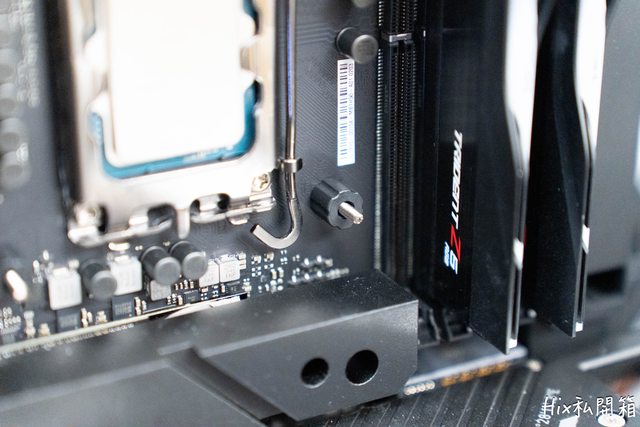 全部安裝完後,這邊可以看到若是冷頭橫置會卡到記憶體槽