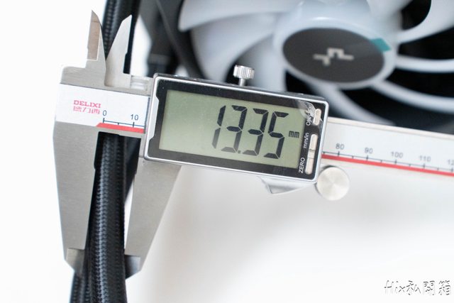 冷排厚度為28mm、風扇厚度為26mm(包含橡膠墊的厚度)