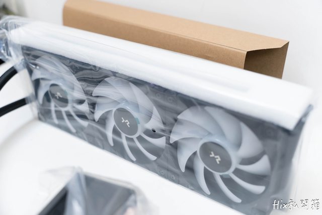 冷排抽出牛皮紙套後可看到還多了一個發泡海綿作為冷排的防護