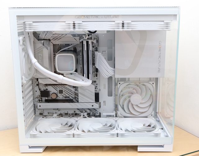 白化版搭配愛斯基摩PRO水冷,散熱相當強勁,含水冷排共8顆14CM風扇