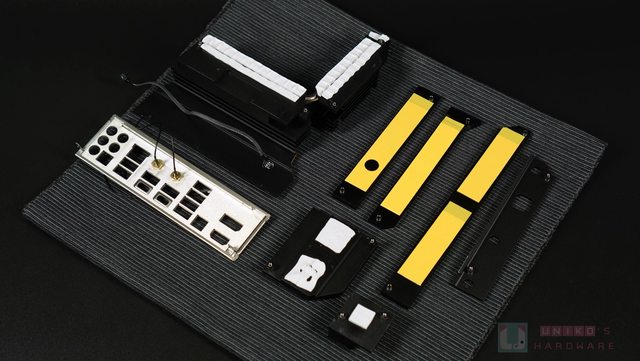 整個供電散熱器非常巨大,表面甚至延伸至 I/O 擋板,作為 I/O 裝甲。全金屬的設計,加