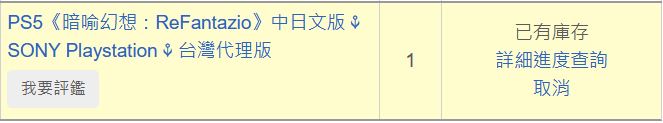 → windfeather: 我的還是顯示預售商品,沒有轉成已有庫存 10/10 14:01