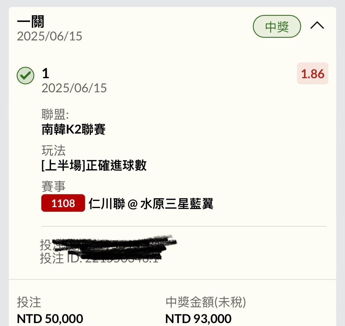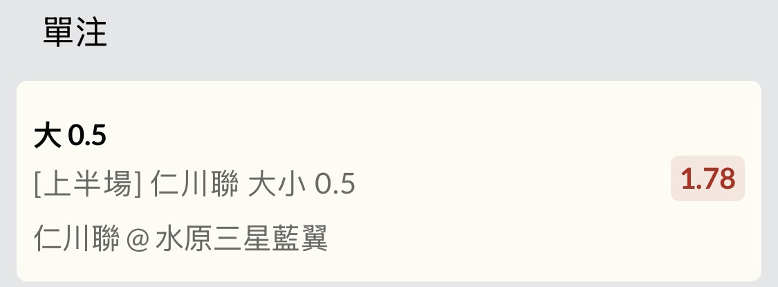噓 shunhahahaha: 靠北 加注買仁川聯小分…直接噴5K 122.100.94.239 06/15 18:17