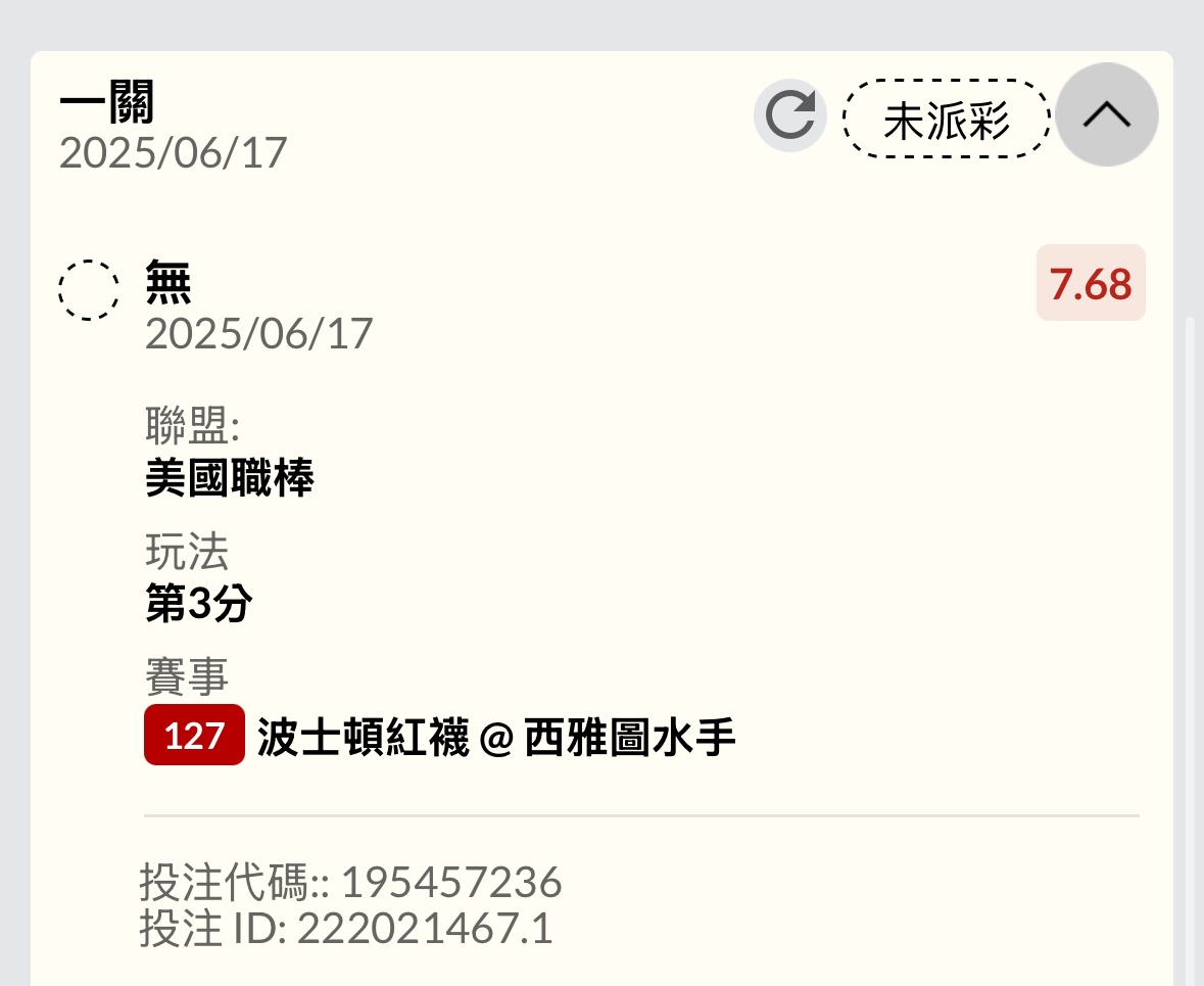 推 workallday: 單場就買高賠,尤其是孬剛不常開的場 42.78.92.64 06/17 10:30