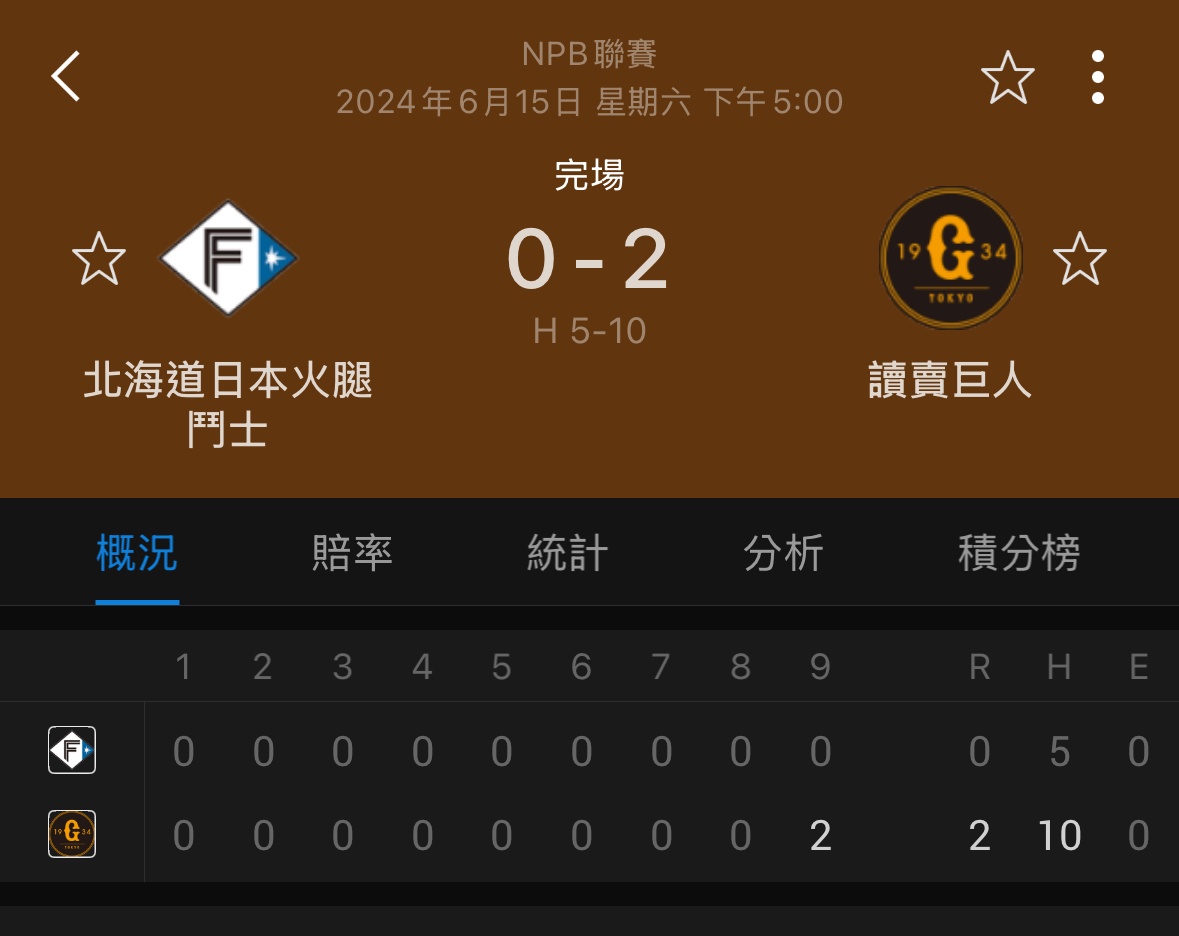 推 humorboy: 火腿好強啊 一局4分3轟- 巨人被打爆了 42.74.84.220 06/17 17:32