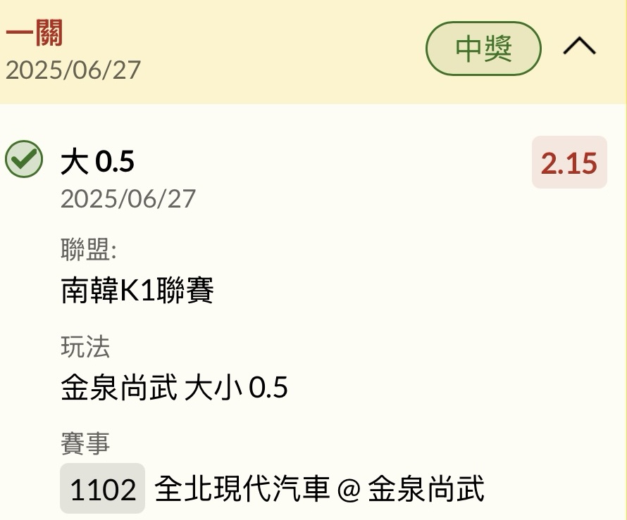 推 z954008: 手上一張2.5大 1.85 金泉正確進球數2 91.162.97.238 06/27 20:02