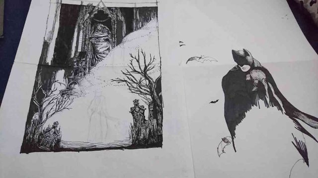 附贈畫到墨水用光的蝙蝠俠(其實是不想畫建築物)。