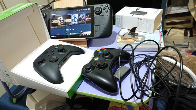 原本的xbox360搖桿、NS拿來代班的JoyCon與藍牙鍵盤滑鼠合照一下