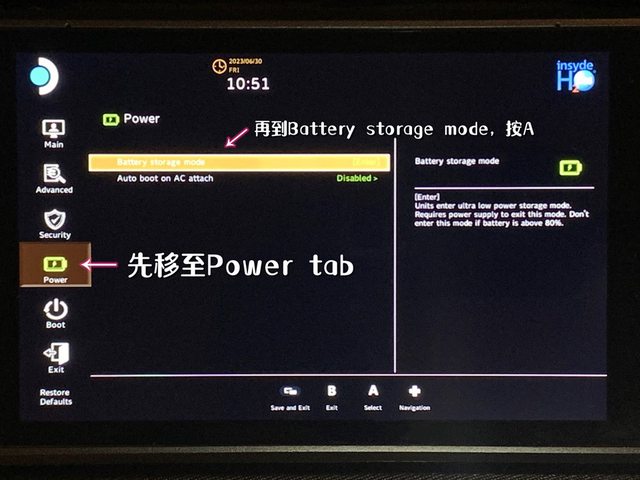 這裡選擇Battery storage mode後按A