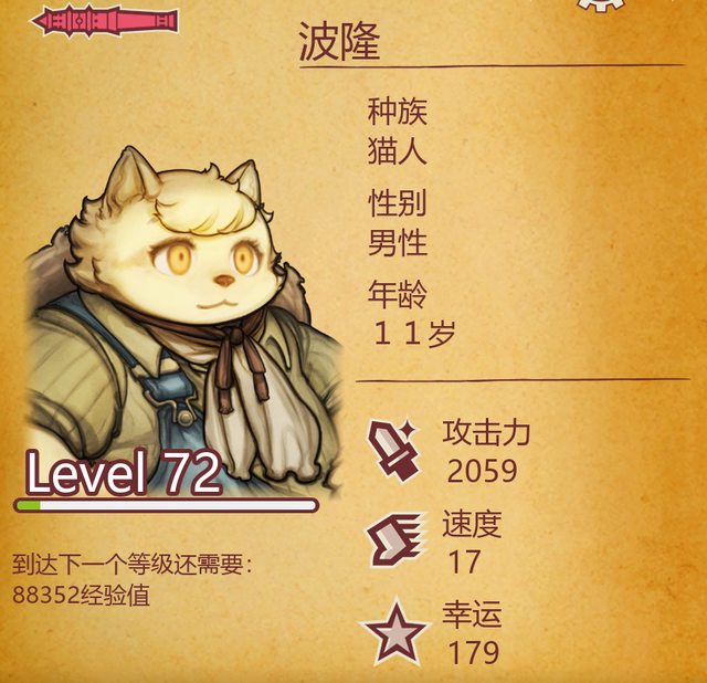 攻擊料理Lv.5、爆擊料理Lv.5,紅色武器Lv.13,帕尼菈與馬爾托好感度Lv.10。
