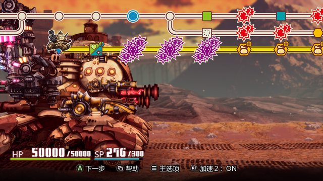 二周目限定路線(黃色):二周目可以挑戰高難度的紫色關卡了,敵人除了HP變多,攻擊