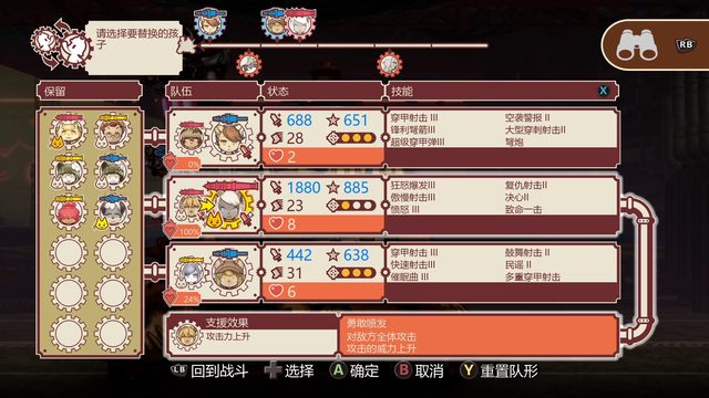 鬥力被削弱,前作破壞平衡的支援效果全都拿掉了,戰鬥難度有稍微提升,想複製先前熟