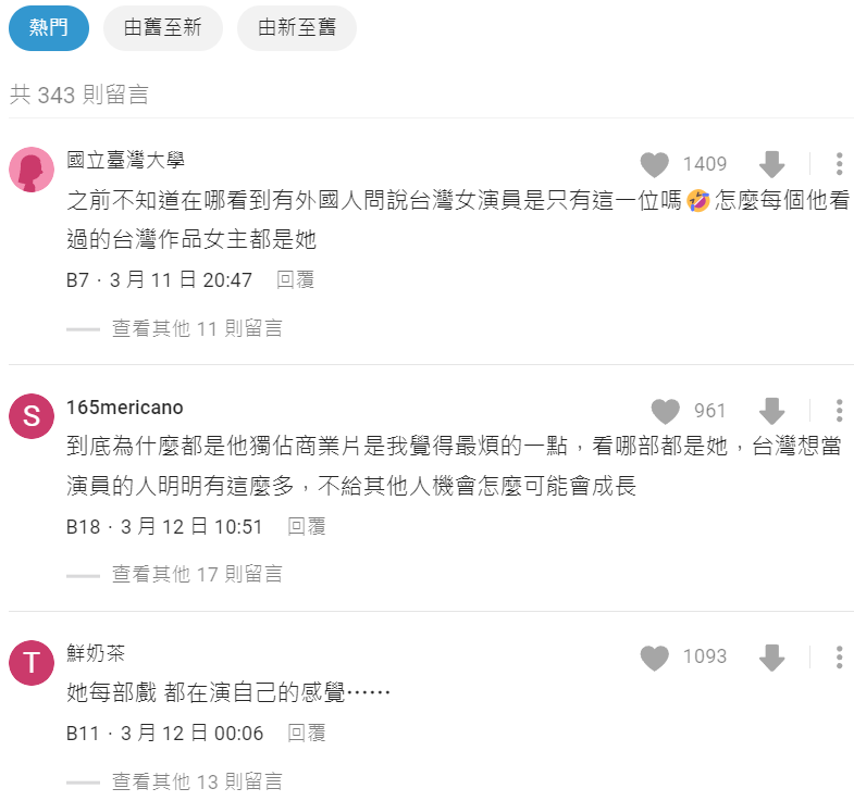 推 hjkkk123: 我不會特別想看她演的戲,感覺一般般,不過幾乎都女的在罵 03/26 15:10