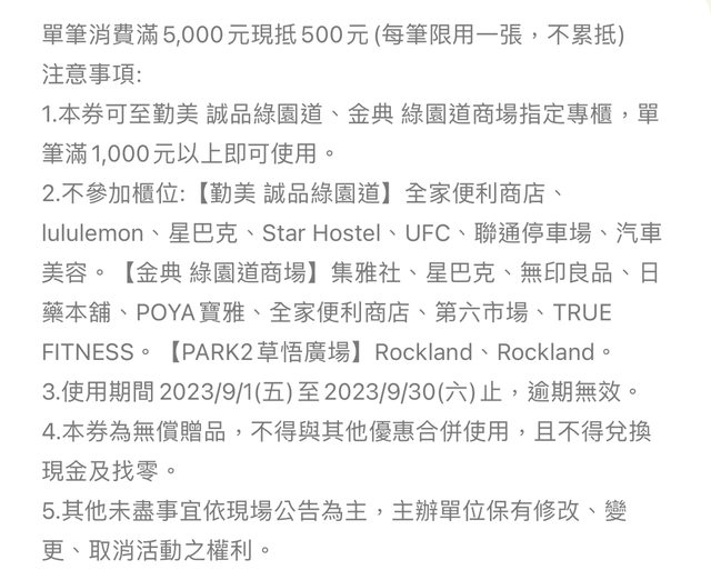 物品名稱:勤美/金典綠園道 滿1000折100購物金