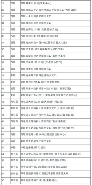 1. 南屯區:田心里(部分)、惠中里(部分)、溝墘里(部分)。