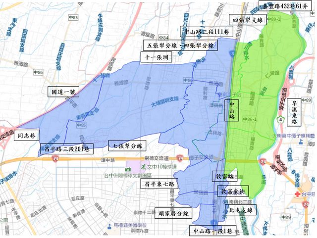 2.大雅區:西寶里(國道1號以東)、三和里(國道1號以東)。