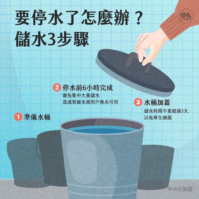 請提早於停水前6小時完成儲水,以避免集中於開始停水前大量儲水,造成管線末端用戶無