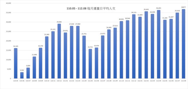 8月使用人次:28萬2841人次,較7月成長14.9%,占整體運量則達24.7%。