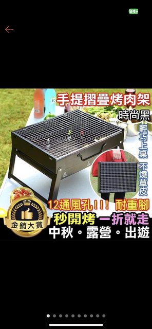 時尚乳白色中型烤肉架,附物料架,提袋,每個348。