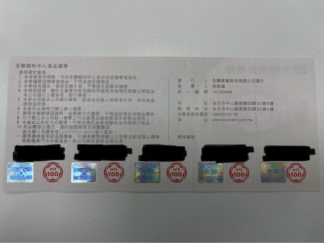 商品名稱:全聯 禮券$4,000(面額500元*7張、100元*5張)