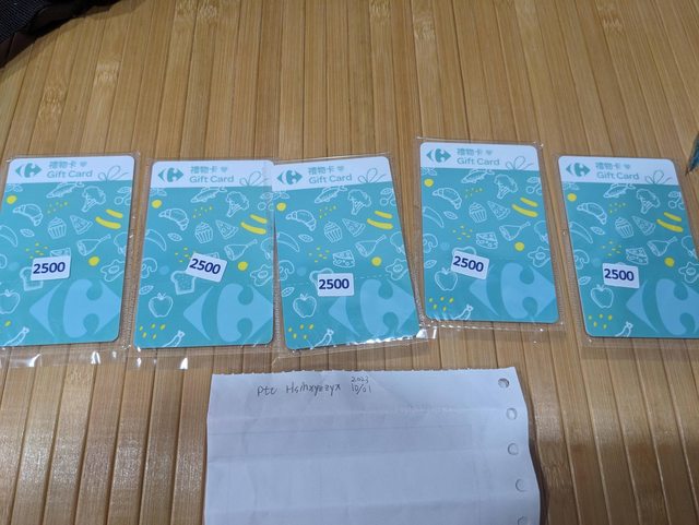 家樂福禮物卡2500元 共五張