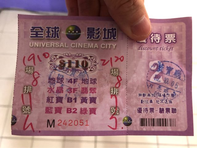 物 品:台中全球影城-電影票一張
