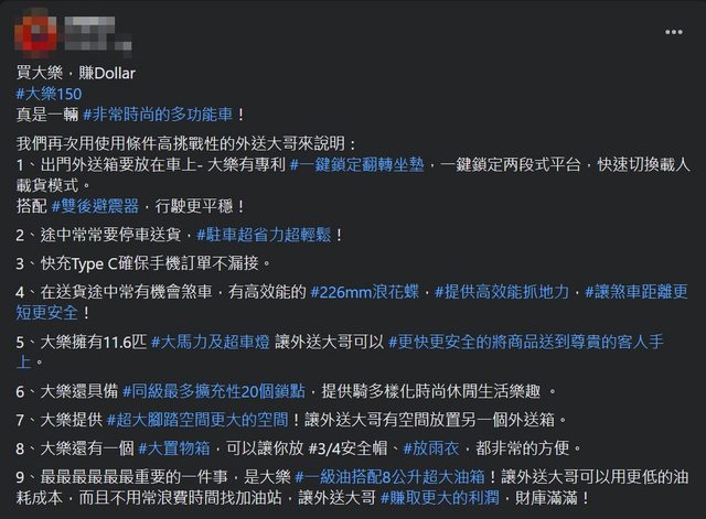 → soulllful: 那8升油箱和無刷啟動的大樂是比較適合 42.78.219.91 07/30 12:53