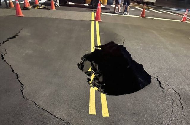 他也指出,南京西路「天坑」看起來比先前吞噬特斯拉的竹北「天坑」深,塌陷範圍擴大