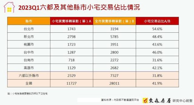 平台資料發現,同期全台小宅產品的交易佔比約為 41.9%,相當於每 5 筆交易中就有 2
