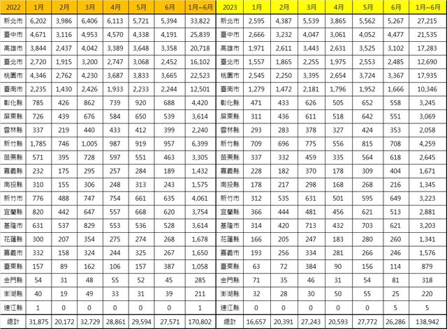 → zwchih: 月初公佈為新聞數據,月底為內政部數據,一切以月底為準 07/26 07:32