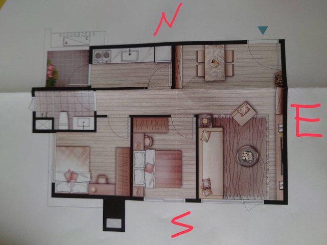 1.把次臥的牆往主臥推到柱邊,主臥次臥對調避免主臥西曬