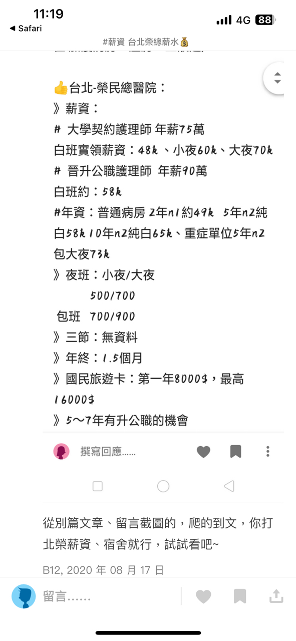 推 tfct: 北榮護理師薪資算護士高標的想考進北榮還沒那麼容易 08/06 11:53