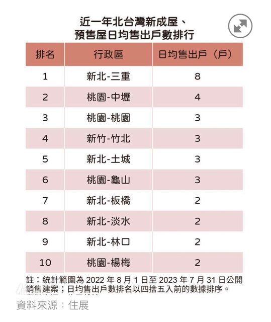 標題[新聞] 新建案平均一天售出8戶 三重奪近一年北台灣區域銷售王