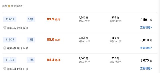 推 Elio2021: 遠揚之森目前共有16筆站上9字頭, 其中10筆是24.X坪 08/15 02:44