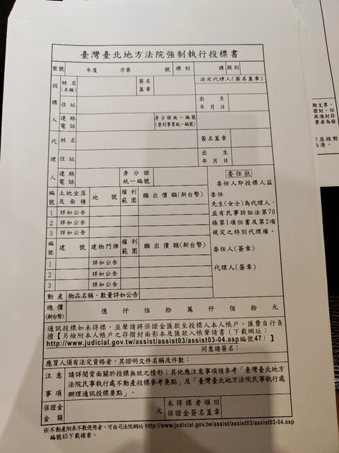 小弟第一次要填寫法拍的投標書,