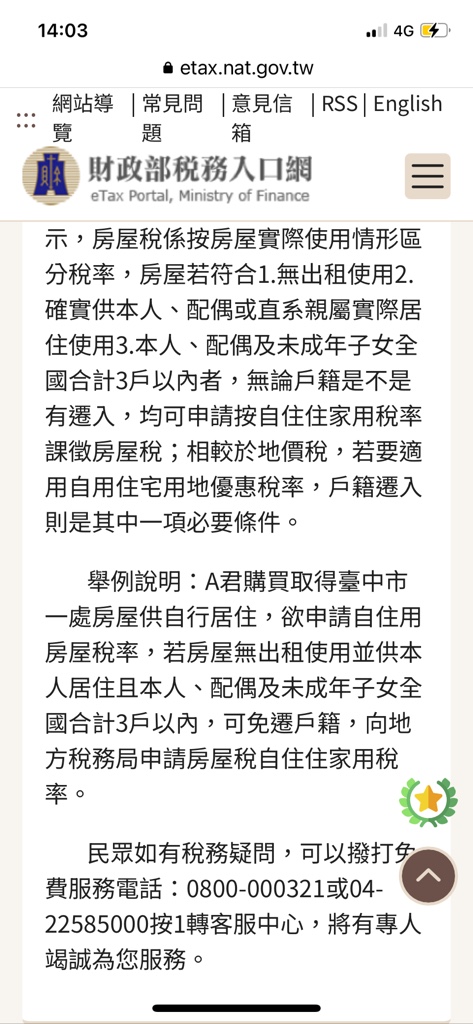 → guesswhen: 沒有說設籍要滿一年 只是說一年內不能租 財政部這樣寫 08/24 11:03