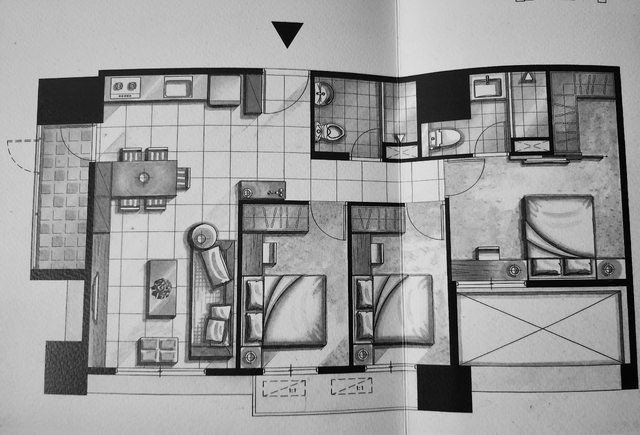 目前我看得到的問題是廚房太小,沒地方放電器櫃&一個房間比較小,好處是採光比A好