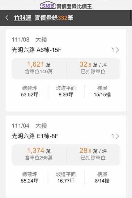: 在591上看到最近竹科匯的實價登錄價格已經回到3x萬