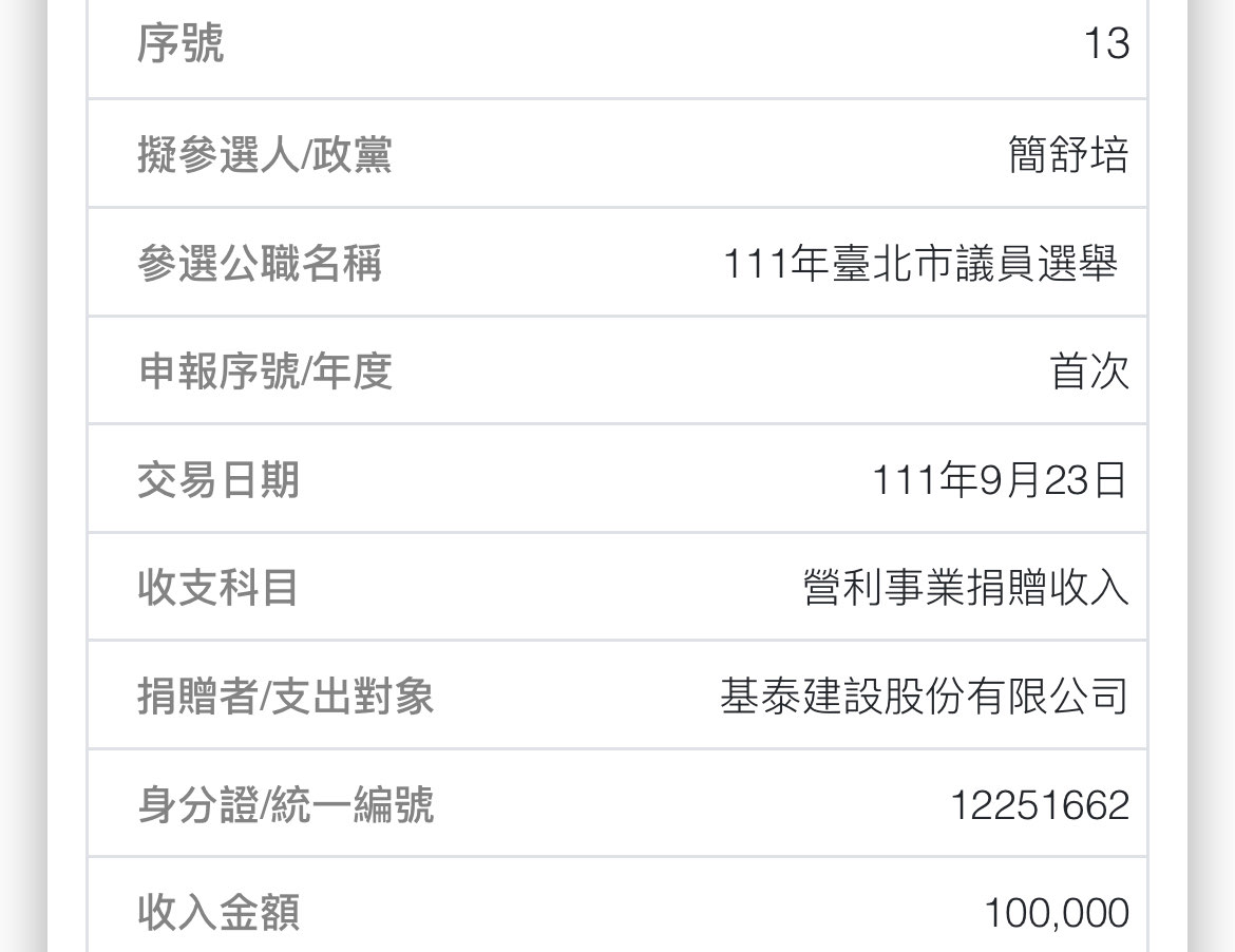 噓 encoreg57985: 結果簡舒培也收基泰政治獻金 綠又打臉自己 09/08 17:02