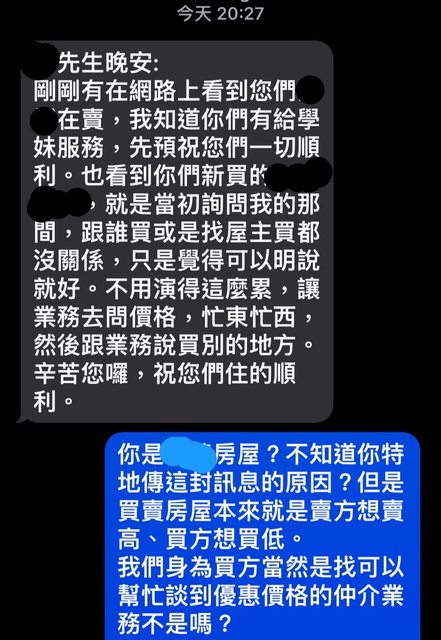 copy5566: 我以為仲介都挺忙的,原來也有閒著發慌傳訊嗆半年前客 09/14 22:31
