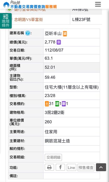 剛剛看實價登錄,不得了一坪63.1萬