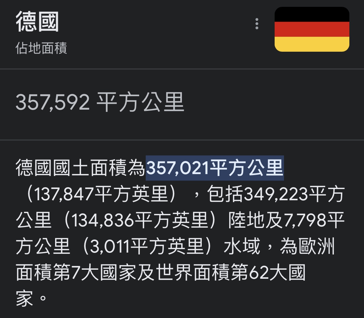→ NovaShin: 所以德國面積多少?德國落塵量多少?還要來嗎?10/01 11:13