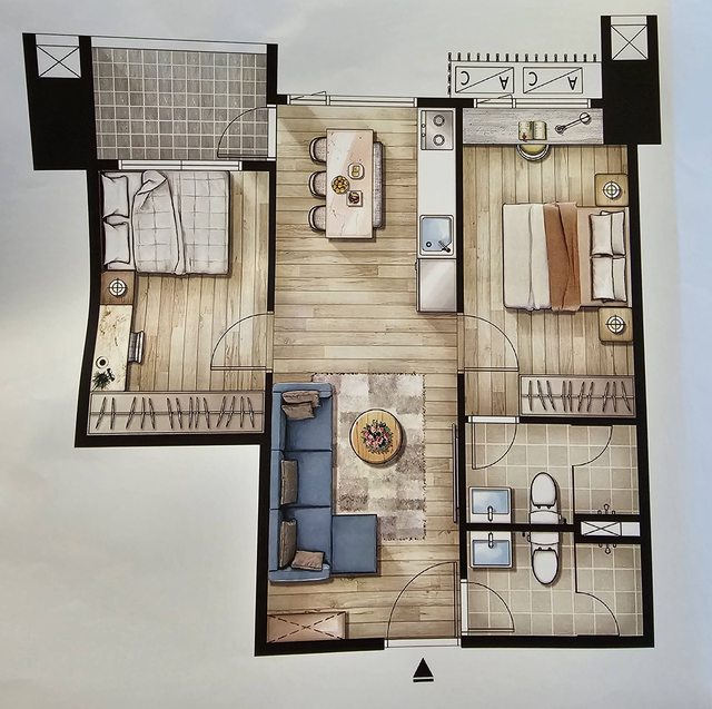 B.2+1房 室內也是17坪左右 坐北朝南 面中庭