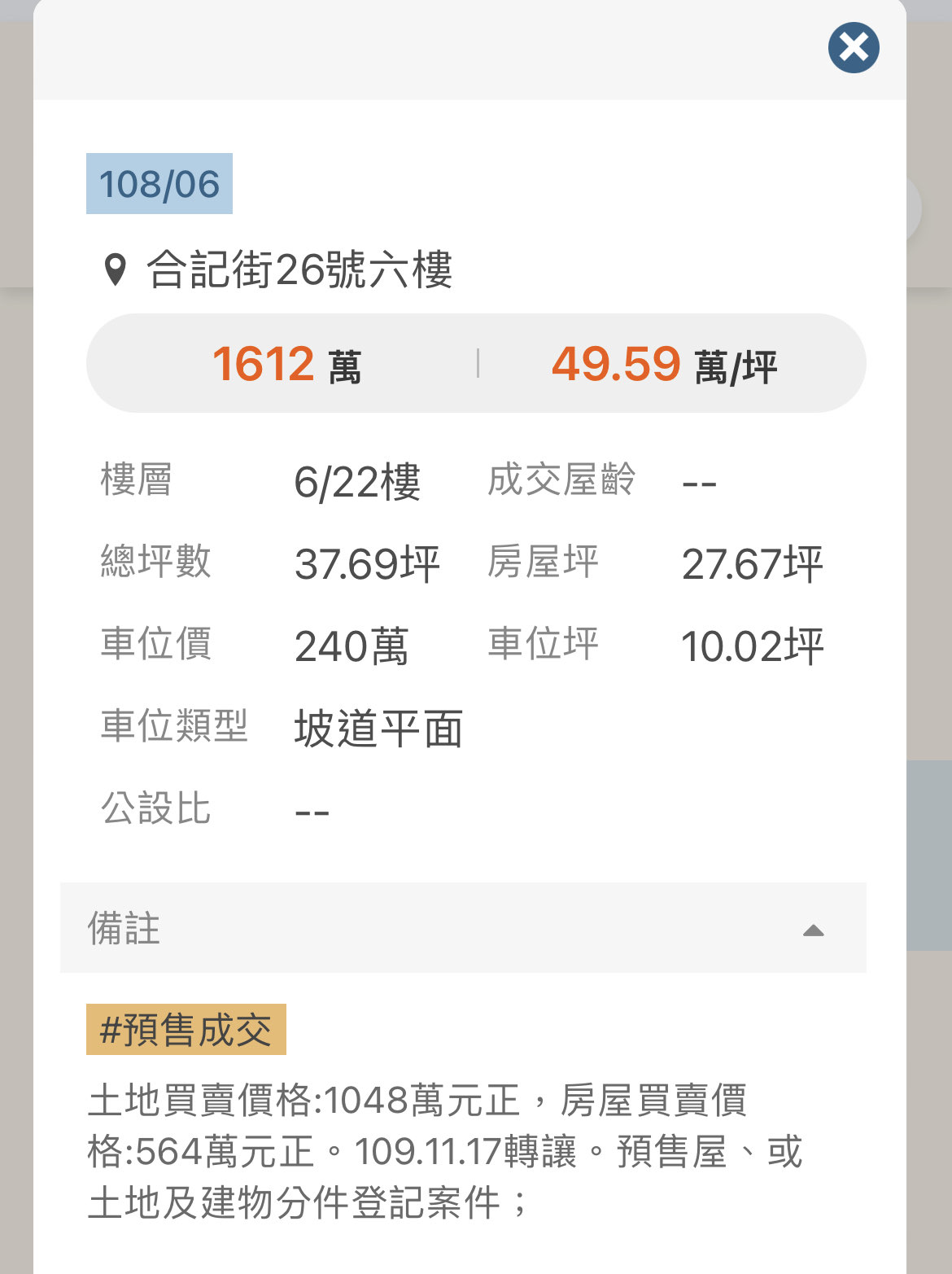 → cicatrix: 2018年買到2023年交屋應該是樂菲莊園,恭喜,那時候的 10/20 15:48