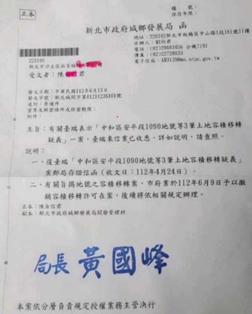 設股份有限公司委託建築師在興建前向新北市政府申請容積移轉30%,卻爆出申請時送審書