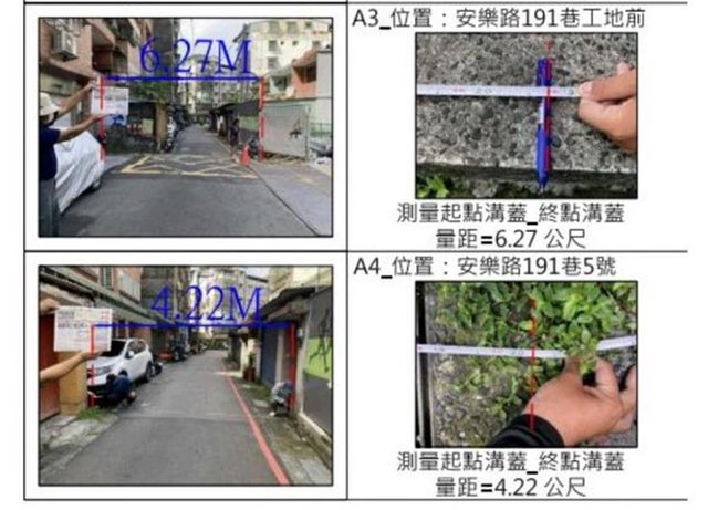 經現場實地測量結果,「華鋐晴晨」建案接臨道路多處不足8米,明顯不符相關規定。