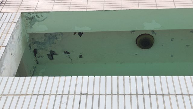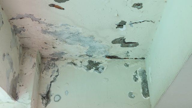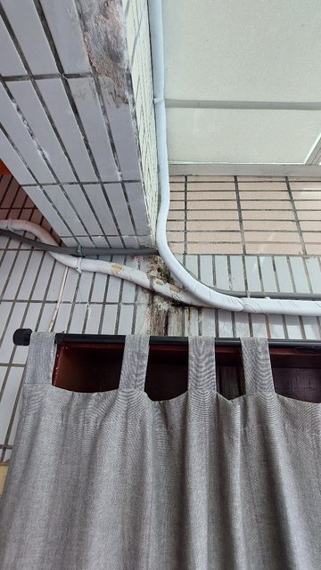 面對陽台右邊的天花板是公共空間,看的出來很嚴重