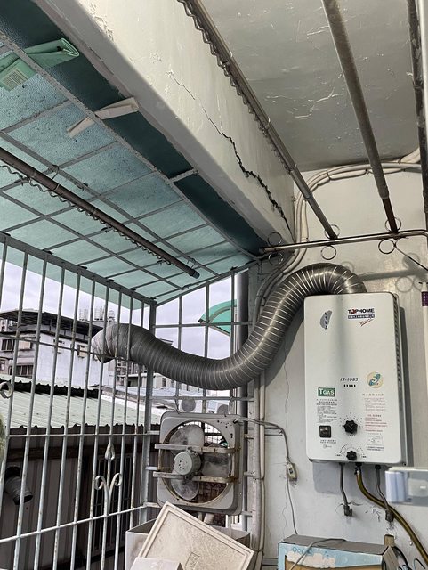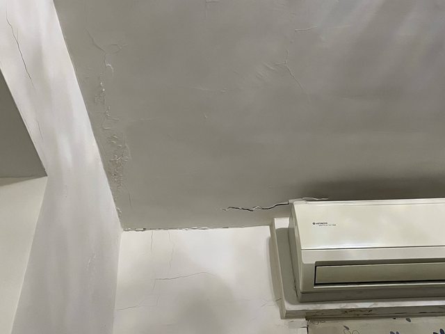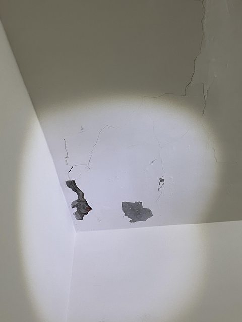 : 室內也有幾處天花板很明顯鋼筋有膨脹,水泥龜裂或剝落的痕跡,還有幾處是有漏水痕
